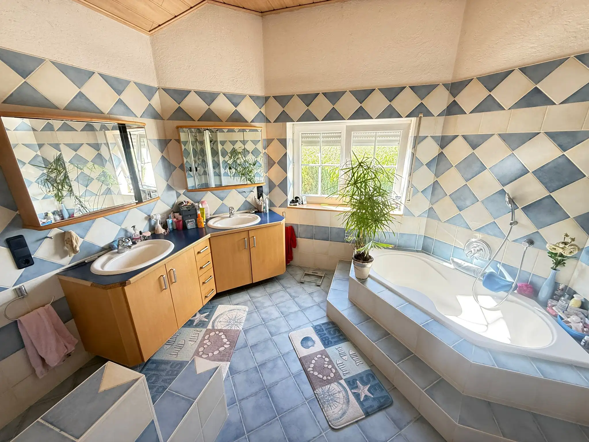 Im Obergeschoss finden Sie das Elternschlafzimmer mit begehbarem Schrank und zwei Kinderzimmer, eines davon mit zweigeschossigem Design – ideal für kreative Raumgestaltung. Der Balkon mit Morgensonne lädt zum Entspannen ein, während der Garten mit Nachmittagssonne Sie verwöhnt.
